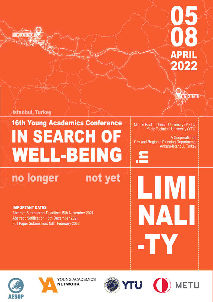 This conference aims to discuss how ‘well-being’ can be achieved for the whole society with a comprehensive and holistic perspective under the liminal and uncertain conditions that cities experience. In this regard, we welcome papers with a conceptual, constructive, empirical, experimental, or theoretical framework in all areas and different scales of city and regional planning and urban studies. These debates are handled in different contexts in cities and regions in different geographies of the world. Thus, young scholars are expected to investigate the concepts of cities not only for the Global North but also for the Global South.