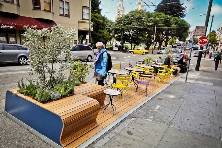 On a clear fall day in 2005, a group of friends and collaborators from the art collective Rebar commandeered an 8-foot-wide by 20-foot-long metered parking space in downtown San Francisco. This two-hour guerilla art installation evolved into Park(ing) Day, a global public art and design activism event that has been celebrated every year since. In 2009, Rebar and other design studios were approached by the City of San Francisco to prototype a more permanent version of Park(ing) Day. In response, we created one of the world’s first parklets in San Francisco (we called our version walklet), and through the diligent efforts of Andres Power in the Mayor’s Office and City Planning, San Francisco’s pioneering parklet program was born